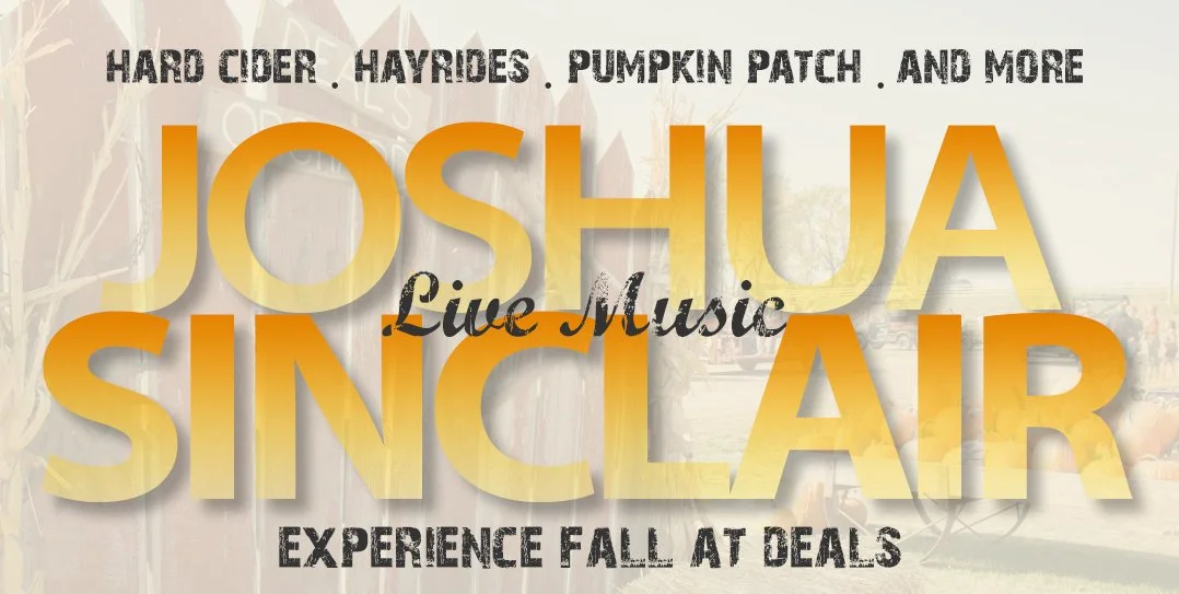 Join Deal's Orchard for a fun-filled afternoon with free live music from Joshua Sinclair from 1 PM to 4 PM. While you enjoy the tunes, grab a hard cider, check out the food truck, and take a hayride through the orchard. Explore the pumpkin patch, get lost in the corn maze, and pick your own apples, all while soaking in the fall fun!