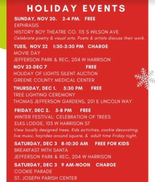 Join the Greene County Community Center and Fudges’s Flowers and Gifts in a Grinch Tree Class! Make a Grinch tree, enjoy Grinchy snacks, and do some Grinchmas table activities! Register at the community center or online at gccc.activityreg.com