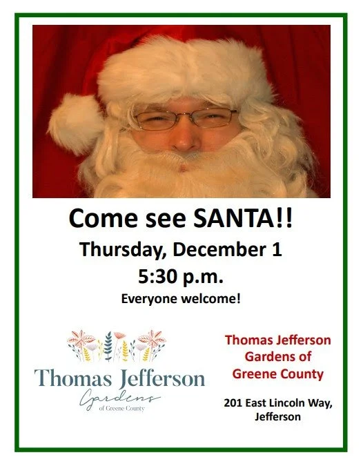 Oh Christmas Tree, Oh Christmas Tree, we can’t wait to see you shine so brightly! Come up to the Thomas Jefferson Gardens located at 201 E Lincoln Way on Thursday, December 1st at 5:30pm to enjoy the lighting ceremony. Don’t miss seeing their very special guest, Santa while you are there!