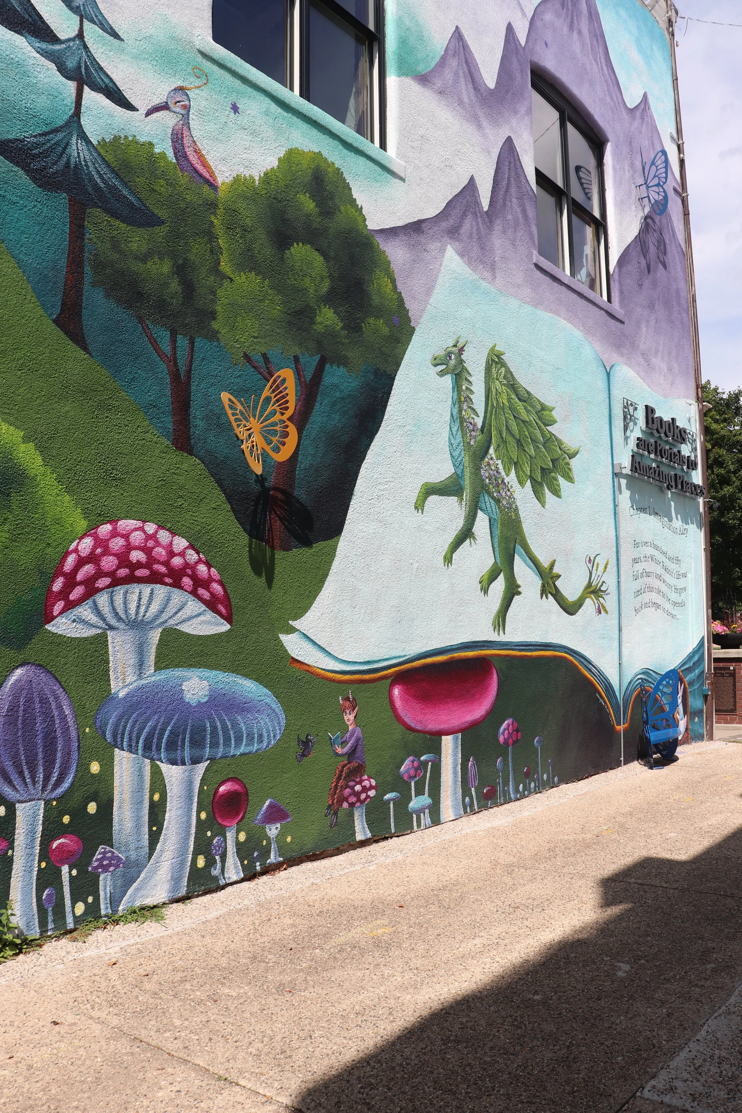 Imagination Alley in Jefferson is a notable community project featuring public art and augmented reality experiences. The alley is part of a broader initiative by Jefferson Matters to revitalize the downtown area using grants and community efforts. It features murals, sculptures, and interactive elements, created with the help of local students and artists like Kelsey Wilson and Hilde Debruyne. The alley includes a “choose your own adventure” board and metal artworks, enhancing the creative experience. Supported by various local organizations and individuals, Imagination Alley highlights strong community partnerships and invites visitors to explore and engage with art in a unique space.