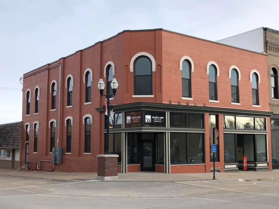 From 2020 to 2021, the renovated space served as the home of Heartland Bank, which is now located North on Elm Street.