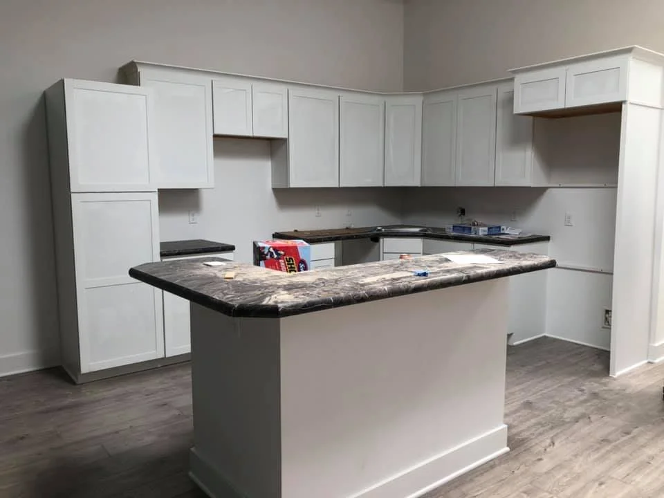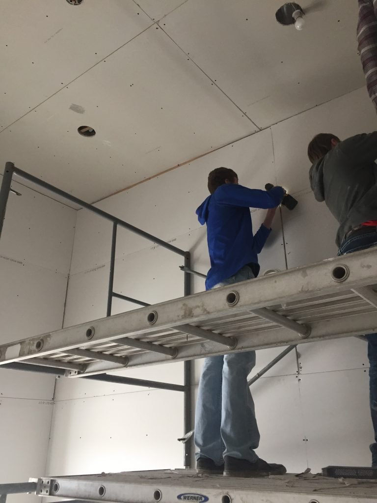 Over the next two years, students worked on the apartment during class time, gaining hands-on experience with a real-world renovation project. Chad Morman served as the construction instructor when the project began, and Kirk Davis was hired during the 2018 school year. As with many renovations, the design evolved along the way, giving students valuable experience adapting plans and problem-solving in an existing structure.
