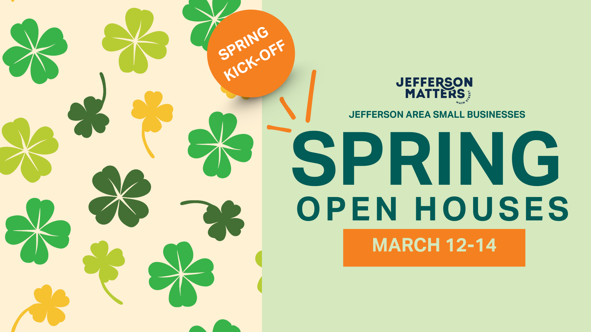 Join us for the Spring Open House in March as local shops welcome the new season with a festive St. Patrick’s Day theme. Make your way through Jefferson, enjoy seasonal décor, special in-store finds, and a refresh for your home. It’s a fun, easy way to shop local, catch up with neighbors, and kick off spring in Jefferson.